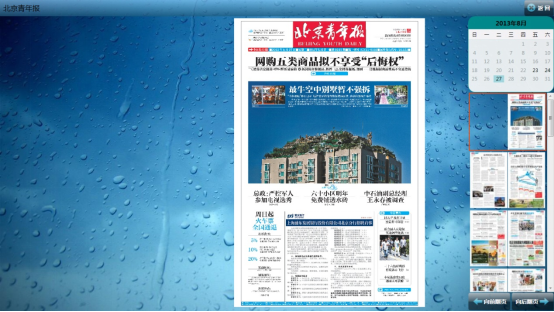 3、界面右側包含:日歷、報紙縮略圖瀏覽和翻頁按鈕。